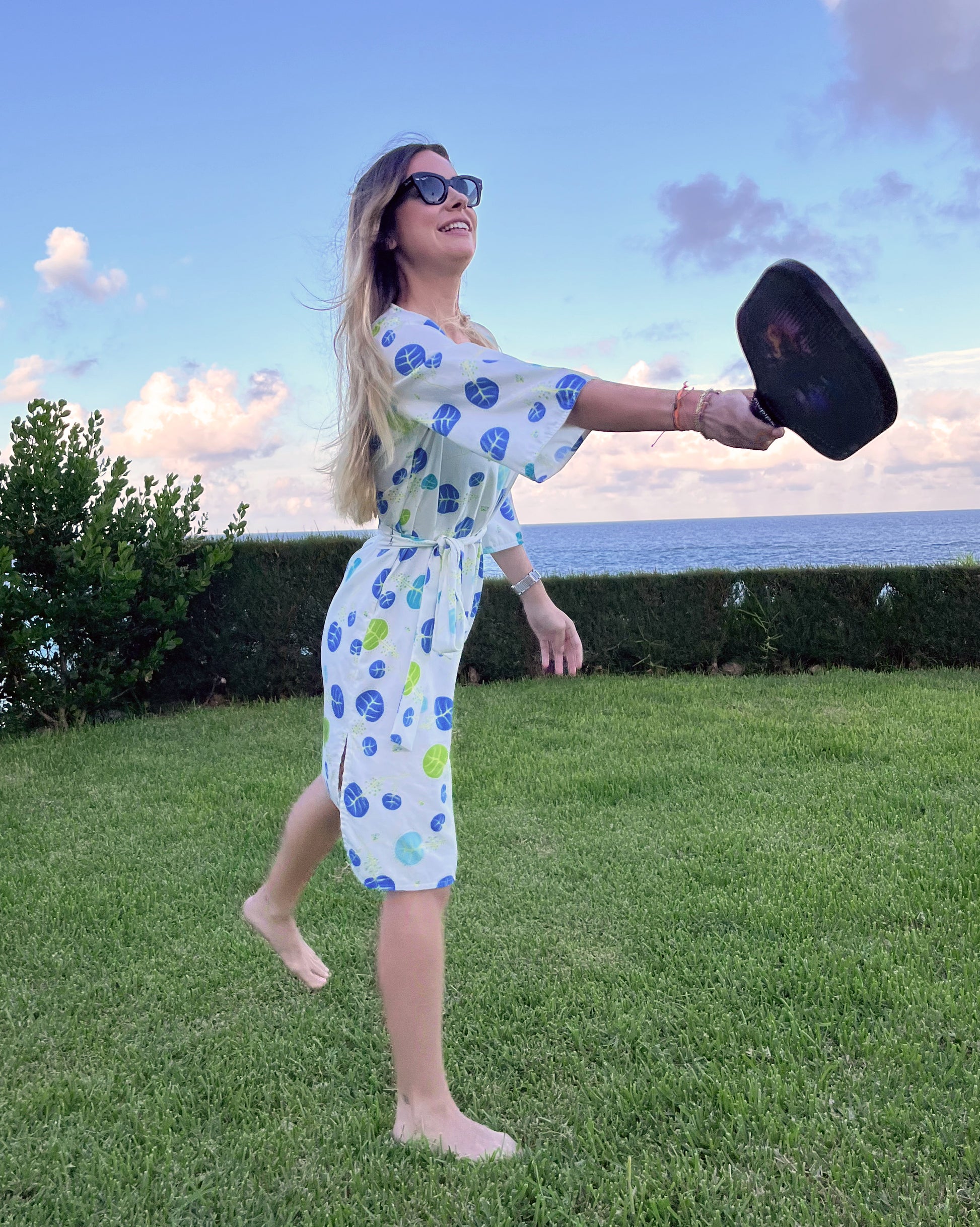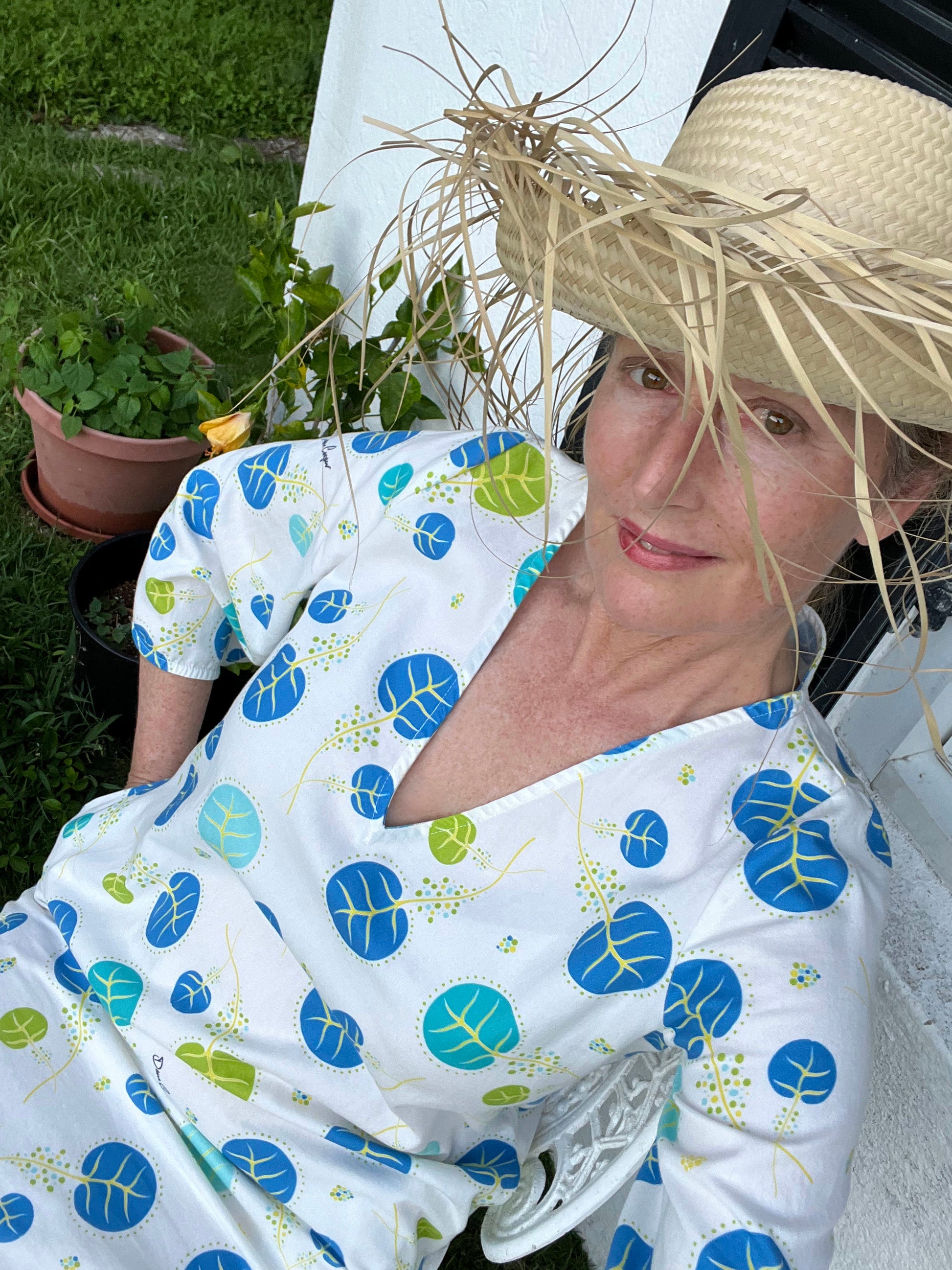 NEW! Our Dana Cooper Bay Grape™️ dress has arrived! Featuring our signature Bay Grape in Sea Foam white and popping tropical blues and greens with an ultra-flattering silhouette in lightweight cotton with pockets and slits on the side. This combination effortlessly blends chicness with a jazzy tropical flair, allowing you to stand out in style. Made with love and proudly produced in New York City.