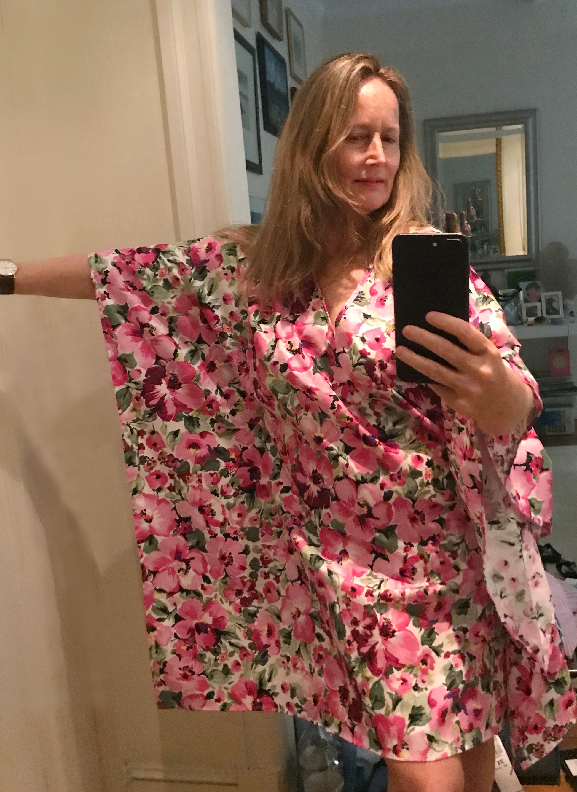 Lightweight cotton, with a flattering cut. Knee length 54" (137")