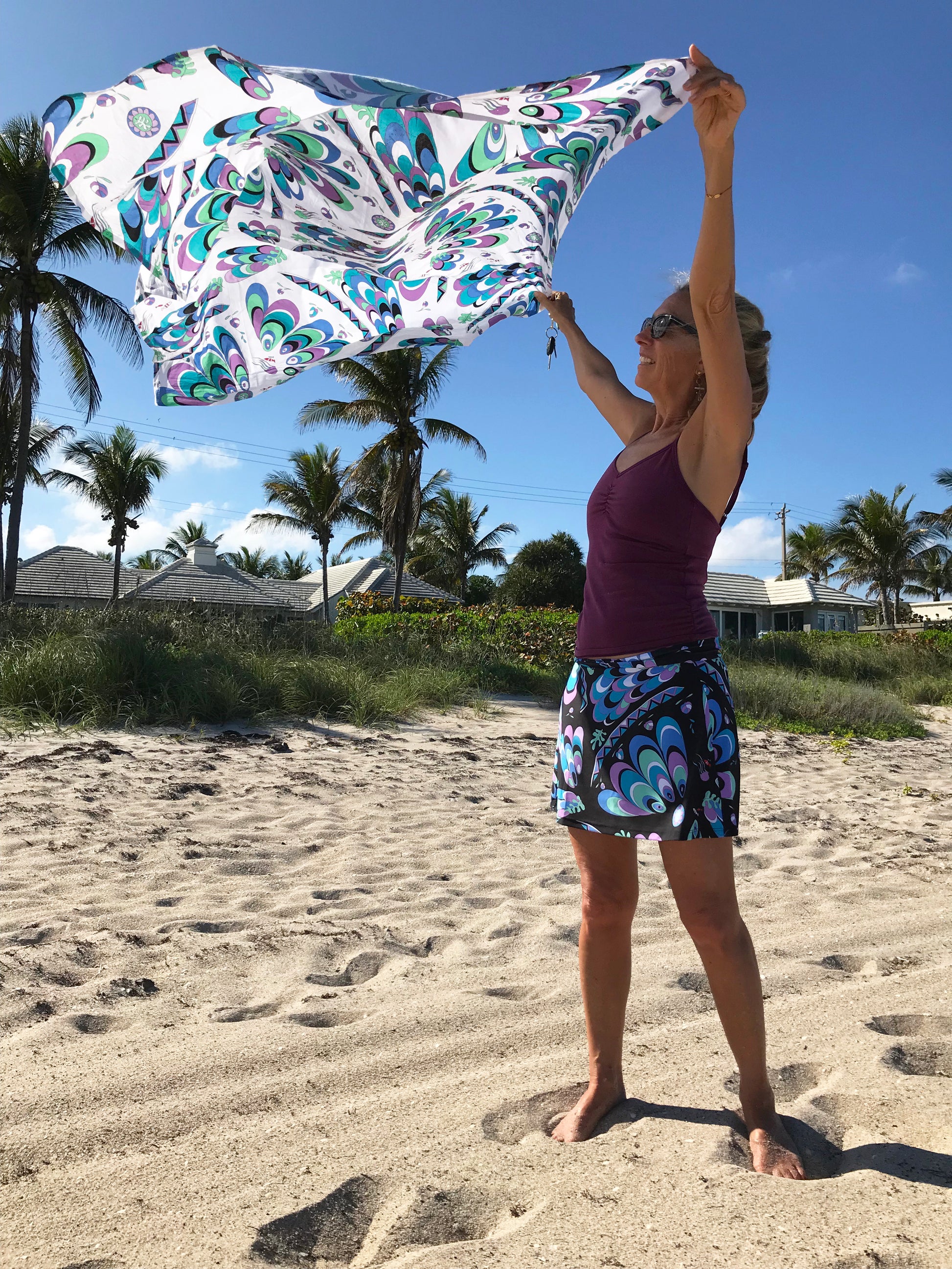 Its depths conceal otherworldly creatures and hidden kingdoms, evoking a sense of wonder and adventure reminiscent of fantasy worlds. Go from beach to bistro. Swim in it, dry off, pair with a cute top and pair of sandals and off you go! Made in the U.S. with ®ECONYL fabric which is regenerated fiber from the ocean. Hyper resistant, breathable, elegant and soft as well as fast drying. Used by the U.S olympics teams for its high quality and durability. Provides sun protection SPF+50. Resistant to chlorine, suntan creams and oils.
